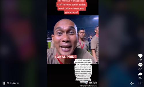 Saat itu, tersebar narasi berbunyi “local pride” yang diteriakkan beberapa jajaran pelatih Timnas Indonesia U-16 hingga viral di media sosial. Hal ini dimaknai sebagai bentuk membandingkan tim asuhannya dengan Timnas Indonesia yang dipimpin juru taktik asal Korea Selatan, Shin Tae-yong.