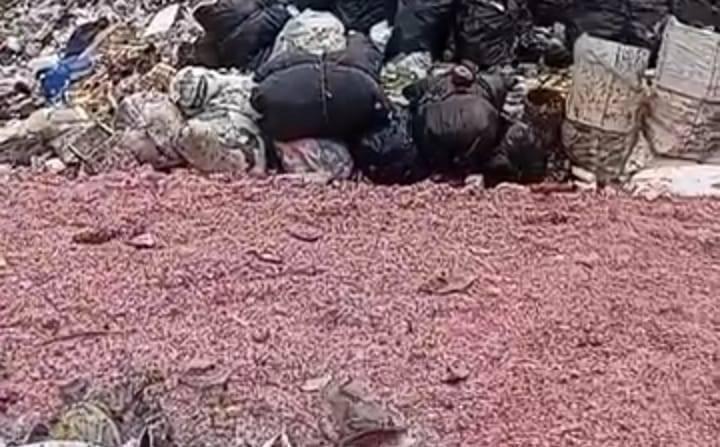 Video yang diunggah akun Instagram @sahabatpedulilingkungan memperlihatkan potongan kertas berwarna merah dan biru yang menyerupai uang pecahan rupiah berserakan di lokasi TPS liar. Sebagian cacahan terlihat berada di dalam karung putih, sementara sisanya tercecer di area pembuangan sampah.