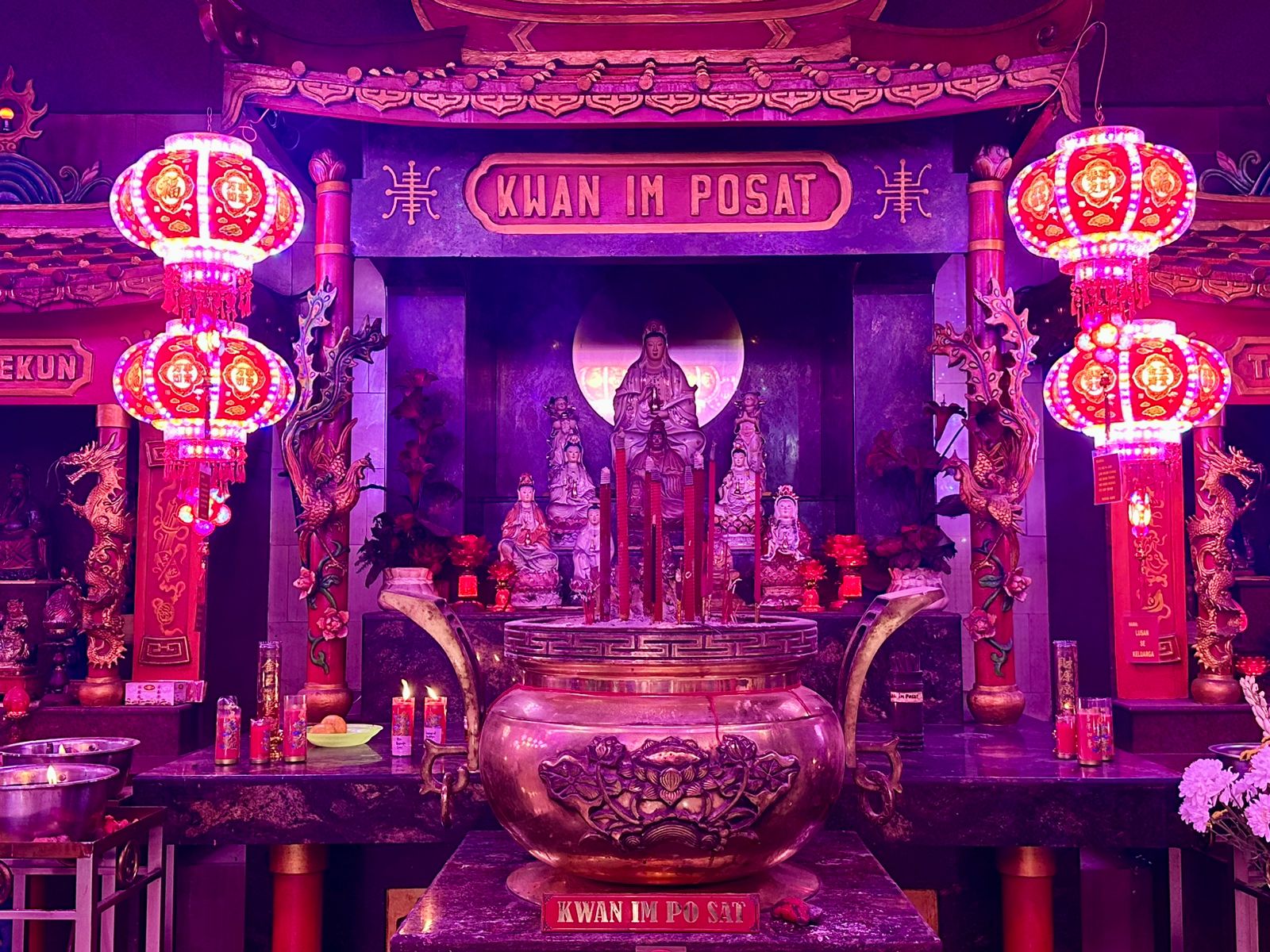 Di altar utama, Dewa Xuantian Shangdi disembah bersama Tjay Sen Loya dan Dewi Kwan Im. Klenteng ini melayani umat Tridharma Konghucu, Tao, dan Buddha sebuah cermin pluralitas dalam satu ruang spiritual.